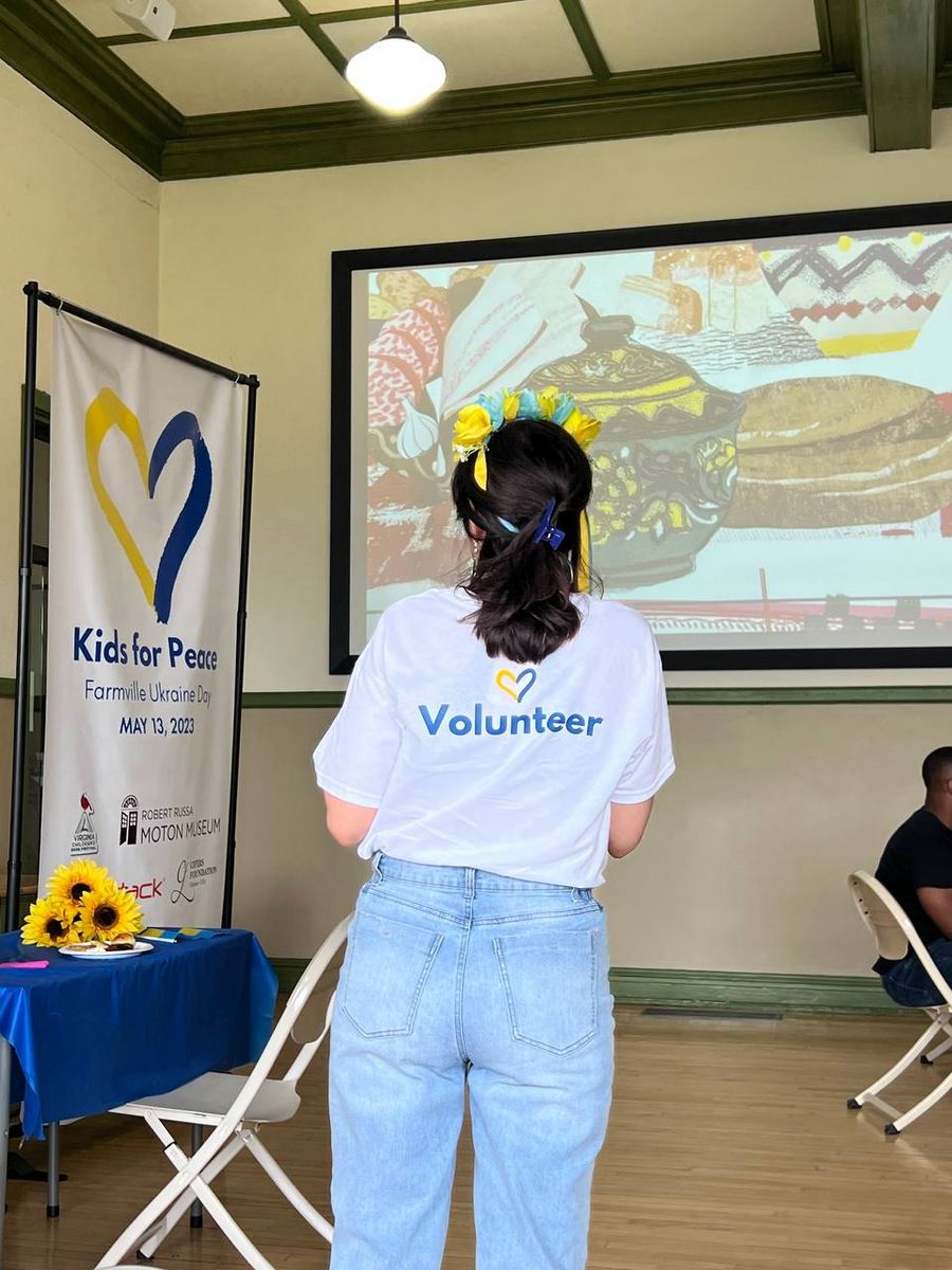 On 13th of May, 2023 in Robert Moton Museum, there was held KIDS FOR PEACE: FARMVILLE UKRAINIAN DAY 2023.  The event was organized in partnership of Virginia Children's Book Festival, The Longwood Center for the Visual Arts, Robert Russa Moton Museum, sponsored by YakAttack and The Cifers Foundation. The volunteers were Ukrainians that live now in the Farmville community.